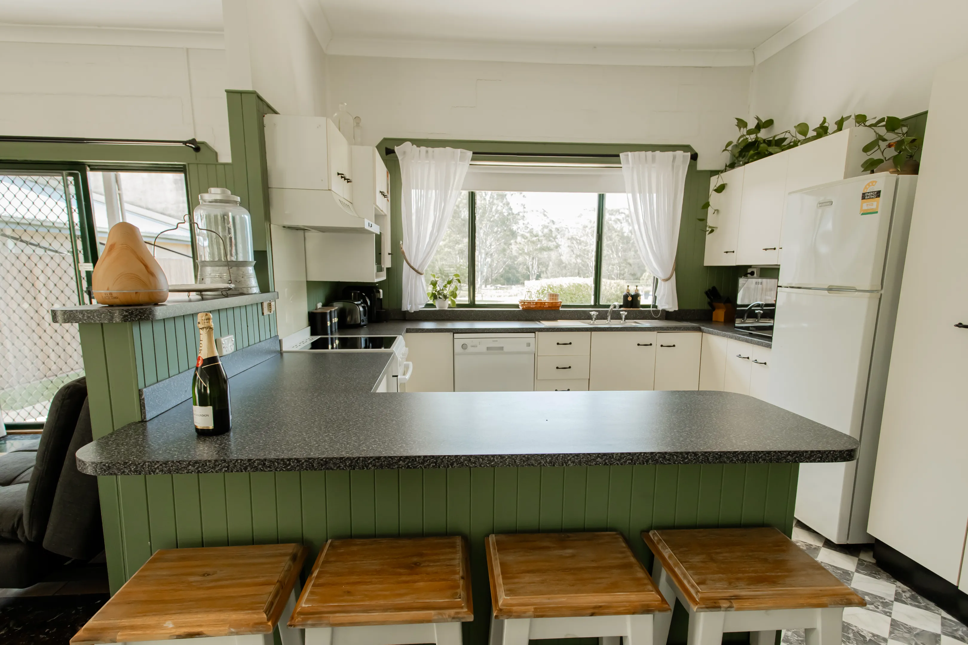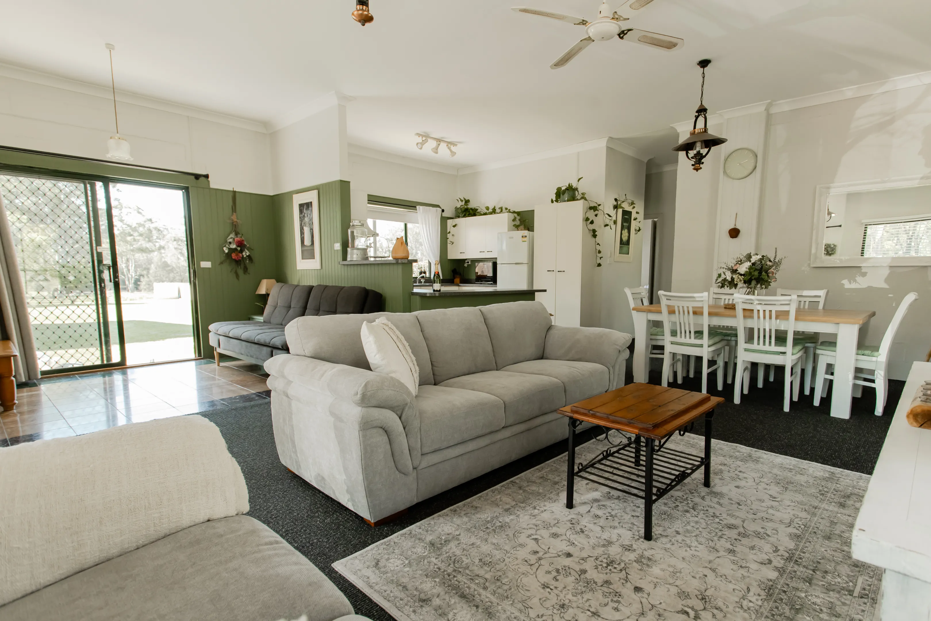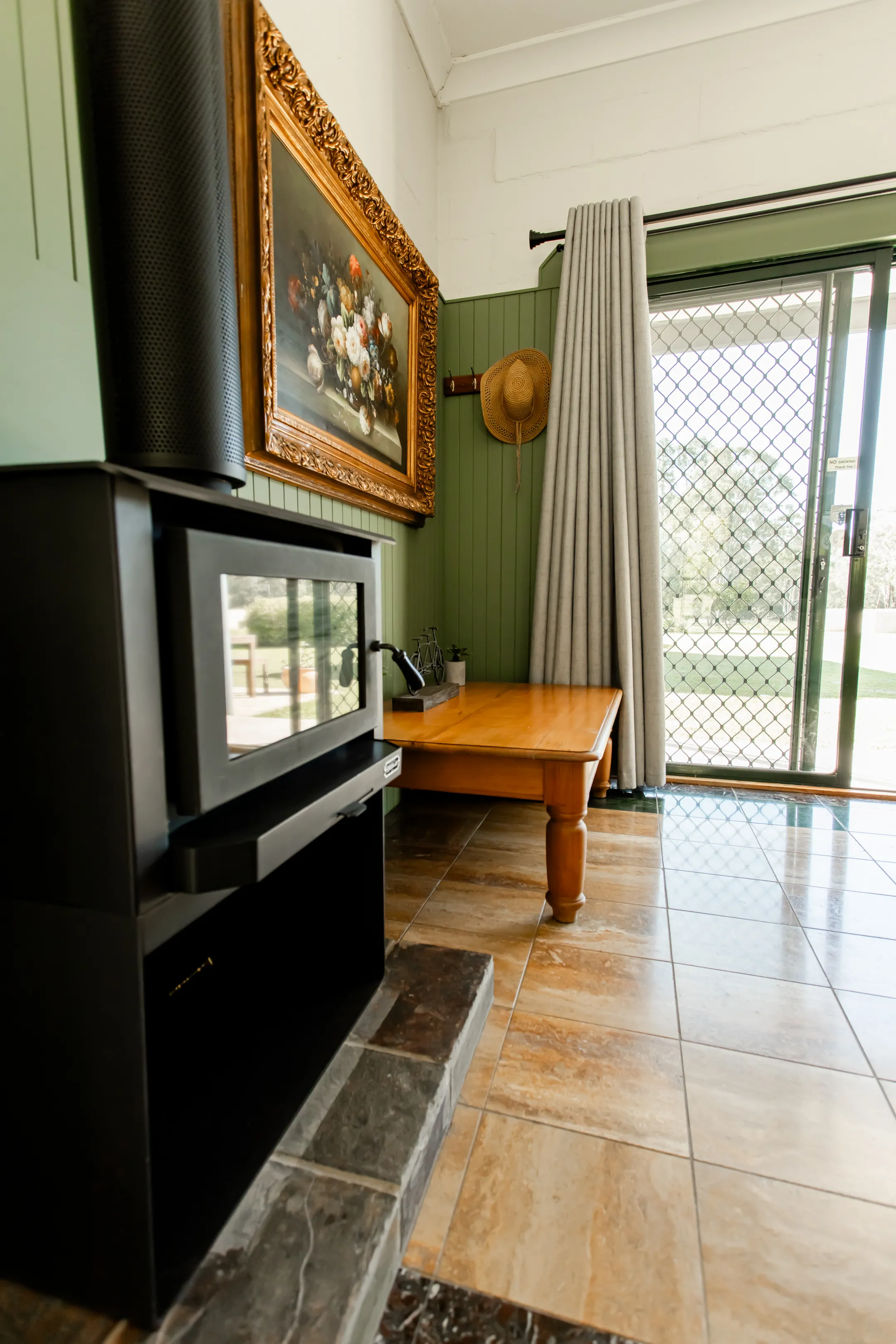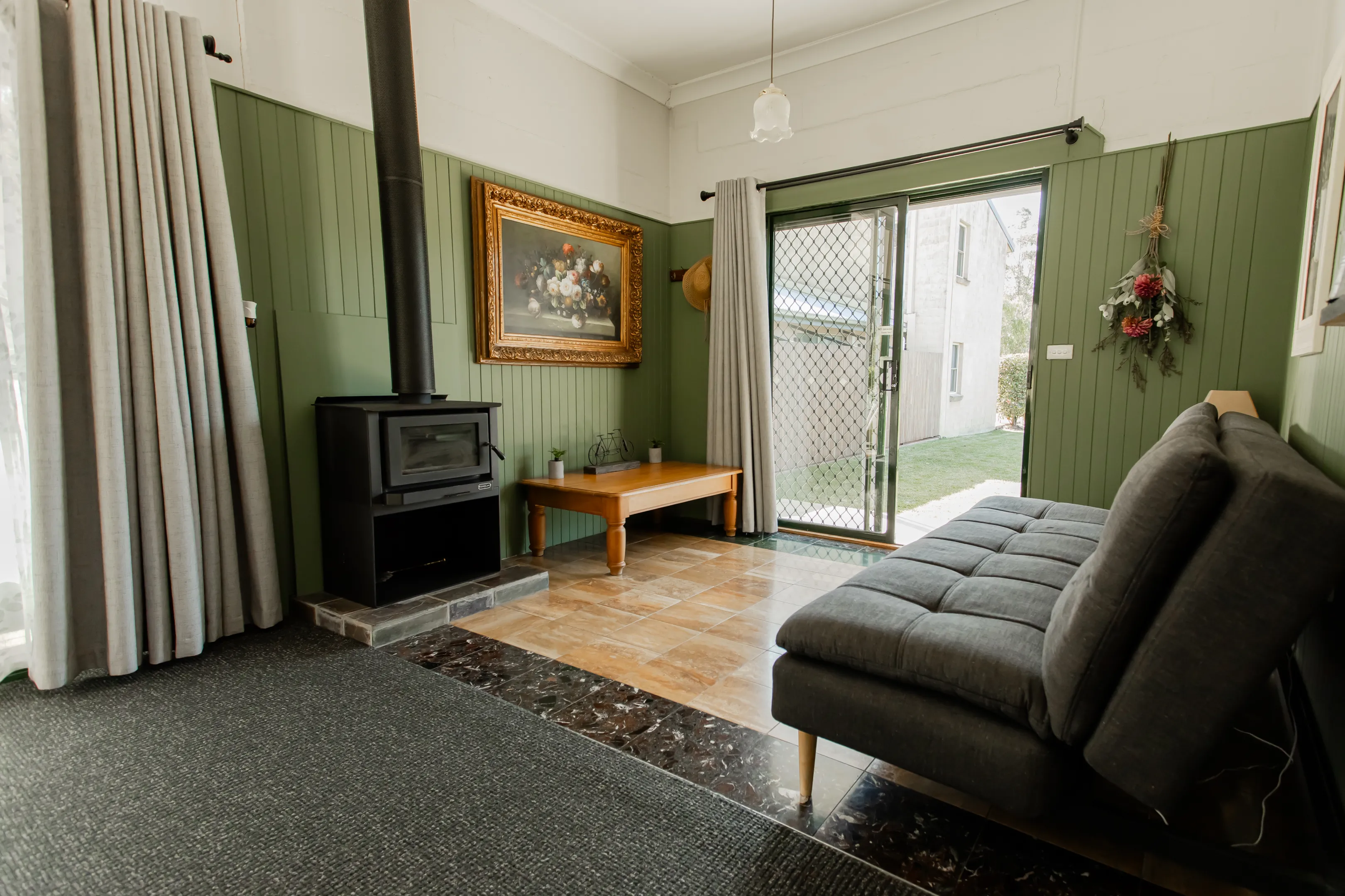 Offering two bedrooms with an open plan living area, perfect for enjoying the warm ambience of the wood fire in the colder months.